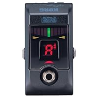 Chromatic Pedal Tuner With Large LED Display High precision, advanced functionality and sleek style make this new guitar/bass pedal tuner from Korg their most advanced yet. The Korg Pitchblack is the same size as a compact effect unit, and features a tough aluminum die-cast body that will endure hard use on the road or in the studio. While small in size, this strobe tuner boasts a large; easy to read LED meter with a light-emitting surface for excellent visibility in any setting from daylight, to stage light and to no light at all, as well as an extremely smooth eleven-segment LED meter that allows accurate visual tuning from any angle. With a red LED that indicates the tuner's on/off status, a large note name display, and a tuning guide that indicates whether your instrument is sharp or flat, you'll always be able to tune quickly and accurately in any situation. The Pitchblack provides a tuning range of E0 (20.60 Hz) to C8 (4,186 Hz), and adjustable calibration between 436 -- 445 Hz.